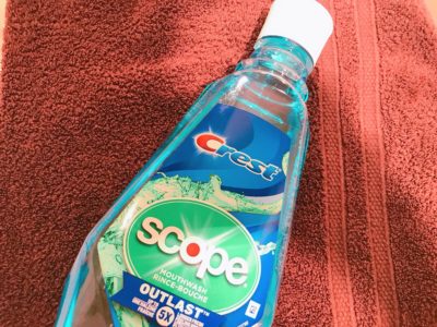 歯磨きのあとは、マウスウォッシュでコーティングします。虫歯対策、歯周病予防や、口臭対策になります。唾液分泌が抑制される就寝中は、とくに虫歯が進みやすいので、寝る前の使用がおすすめです。私がつかっているのは、こちらのもので、この大きさでサイズで4ドル以下はお買い得。(日本だともっと高いですよね)30秒ゆすいで、飲み込まずに捨てます。99パーセントの殺菌力があります。