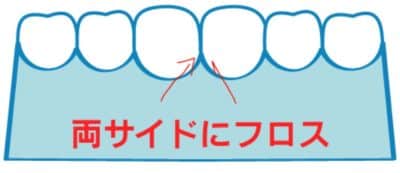 - デンタルフロスで歯間、歯周ポケット、その他歯ブラシでは届かない所の歯垢を落とす