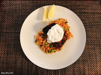 レモン果汁とレモンの皮をまぜたサワークリームソースがアクセントになって、すごく美味しい。