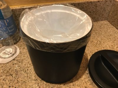 冷蔵庫が無い部屋は、アイスマシンが、ホテルの宿泊階のどこかにあります。部屋にあるアイスボックス(ビニール袋を入れるちいさなケースがコップ類の近くにある)をもって、アイスマシンから氷を入れ、飲み物を冷やすことができます。