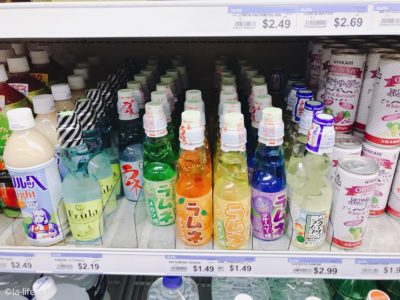 日本のお茶やジュースなど。カルピスは「カルピコ」の名前で販売されています。ラムネも売られていて、昔なつかしの文化を子供にも体験させられます。