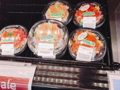 お刺身コーナーも豊富です。サーモンいくら丼など、ほかのお店では買いにくいような、鮮度が重要なものも安心して購入できます。